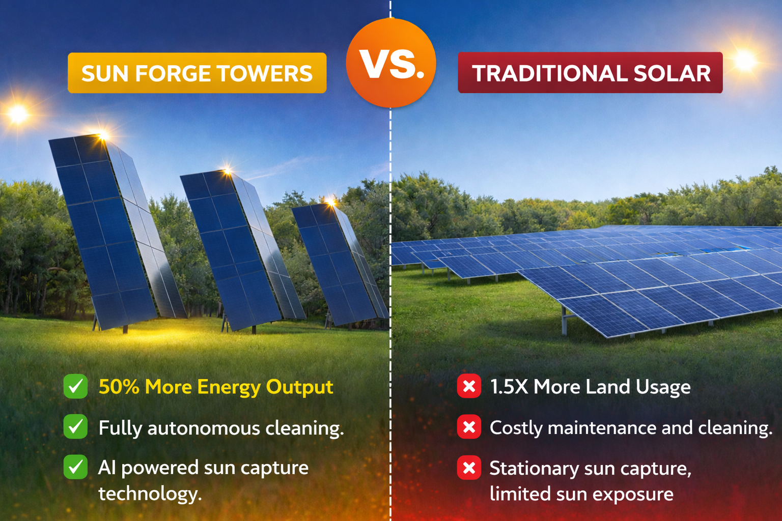 CAPACITY FACTOR: Due to the lack of optimal angles and the inability to track the sun, traditional solar converts only 22% of its energy-generating potential. This inefficiency limits the economic viability of projects.